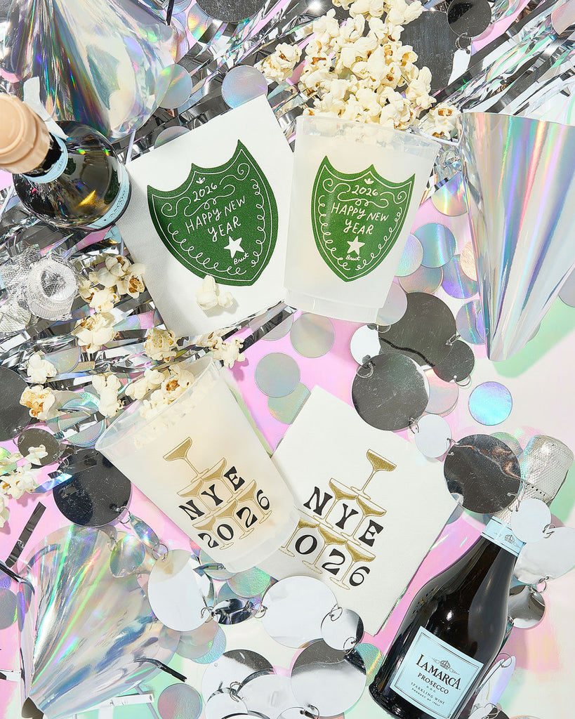 Happy New Year 2026 - Printed in dark green on linen-like white cocktail napkins.