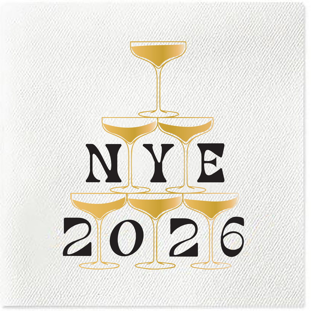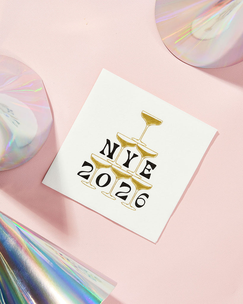 NYE 2026 - Printed in black and gold foil on linen-like paper napkins.